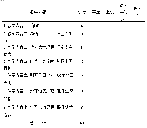 课程目标1:以正确的人生观、价值观、道德观和法治观教育为主线,让学生充分掌握思想道德和法治的基本知识,通过讲授与学习帮助大学生确立正确的人生观和价值观,形成崇高的理想信念,继承优良传统,弘扬中国精神,牢固树立社会主义核心价值观,培养良好的思想道德素质和法治素养。