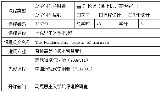 《马克思主义基本原理》课程教学大纲