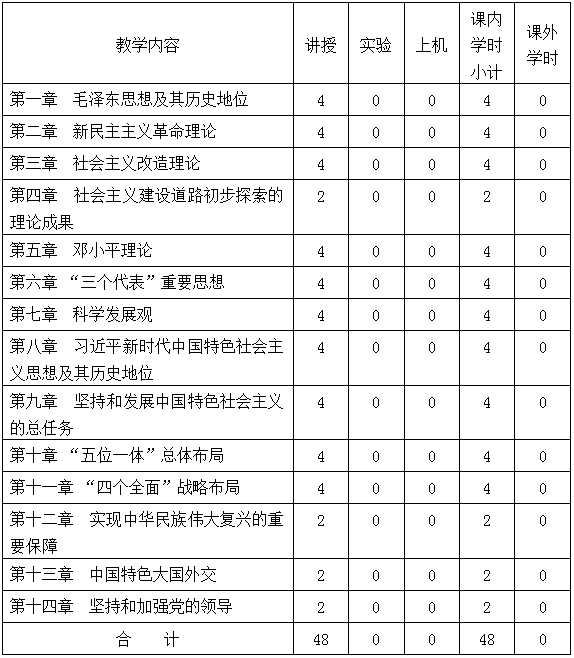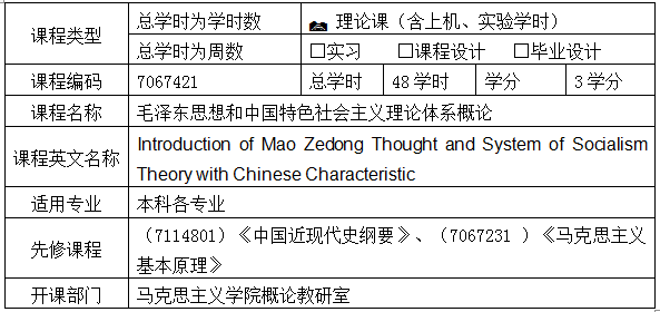 《毛泽东思想和中国特色社会主义理论体系概论》课程教学大纲