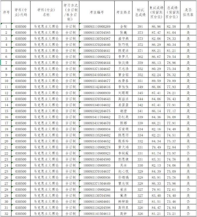 bat365在线中国官网登录入口2023年硕士生招生第一志愿考生复试结果(含拟录取名单,以一级学科/专业为单位)
