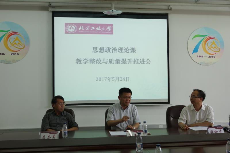 为贯彻中央和北京市高校思想政治工作会议精神,落实我校思想政治理论课“质量建设年”的任务要求,5月24日下午,“bat365在线中国官网登录入口思想政治理论课教学整改与质量提升推进会”在瀚学楼1208会议室召开。校党委副书记郭玉良、学工处(研工部)处长高国伟、教学信息员谭亚俐,以及bat365在线中国官网登录入口全体教师和部分学院辅导员参加了会议。会议由bat365在线中国官网登录入口院长张加才主持。