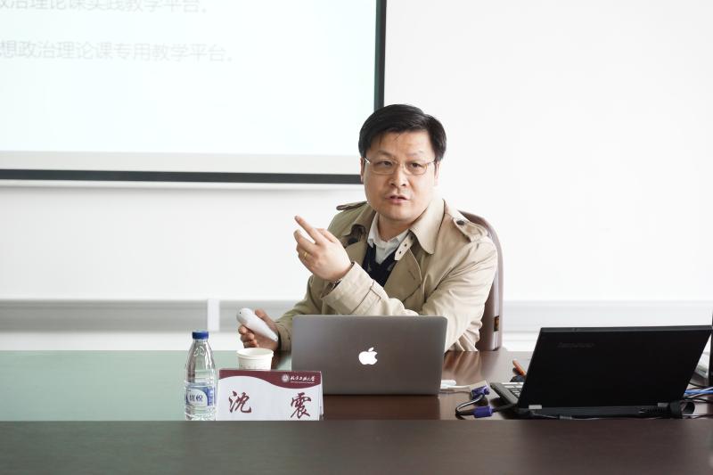 4月6日上午,瀚学新思维系列讲座第3讲如期举行。应学院邀请,北京工业大学bat365在线中国官网登录入口教师、北京市“青年英才”计划入选者沈震,在瀚学楼1208会议室为我校思想政治理论课师生做了题为“基于移动互联技术的思政智慧课堂教学模式改革”的精彩讲座,展示了将新媒体理念和技术运用到思政课堂的前沿成果。会议由bat365官网副院长李志强教授主持。