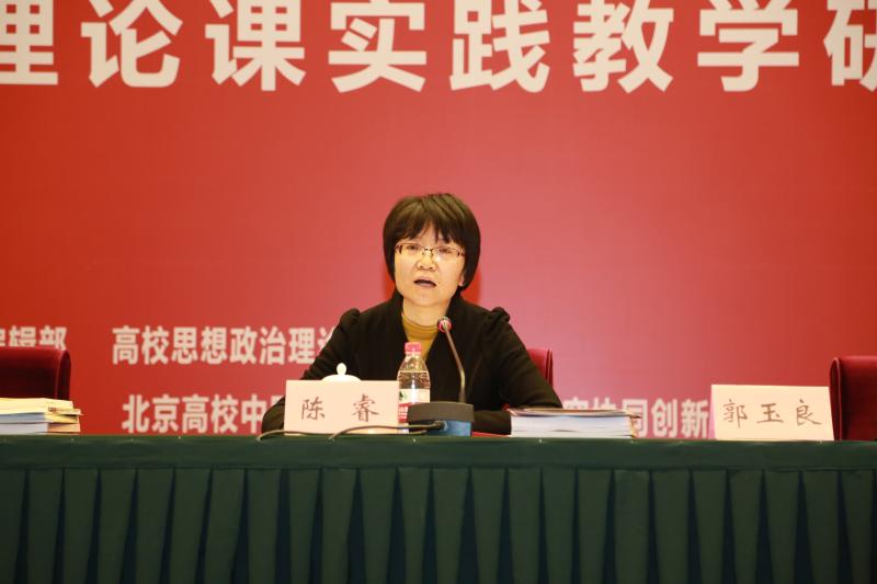 教育部社科司教学与出版处处长陈睿以及北京市委教工委副书记郑登文分别发表了讲话。郑登文重点介绍了北京市积极推进高校思想政治理论课实践教学的有效举措与基本经验,充分肯定了各高校在实践教学方面取得的成绩,并分析了当前思想政治理论课实践教学存在的问题和不足。陈睿在讲话中介绍了教育部社科司推进高校思想政治理论课实践教学的基本思路与有关举措,并对高校实践育人工作提出了意见和建议。