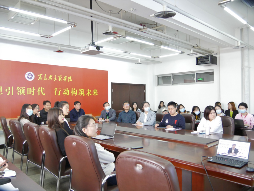 为贯彻落实习近平总书记重要讲话精神,引导广大青少年从党史中汲取智慧力量、践行使命担当,3月31日下午,bat365官网于1208会议室,组织全体师生观看由现任中央委员会候补委员、中央党校副校长谢春涛同志主讲的“首都百万师生同上一堂党史课”之系列网络公开课第一讲——中国共产党为什么能。