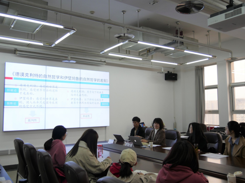读书会以“真学、真懂、真信、真用、真教”为宗旨,以阅读马克思主义经典原著为方向,采取句读研讨、师生互动、专家讲解等丰富形式,坚持打造bat365在线中国官网登录入口学术共同体。以教师推荐读本、学生自荐领读、师生共同研读的形式,本学期经典读书会共策划开展八期经典阅读活动,书目涉及哲学、文学、历史学、社会学等多个领域。本期读书会围绕马克思的博士论文《德谟克利特的自然哲学和伊壁鸠鲁的自然哲学的差别》进行阅读讨论,共分为“学生领读、教师解读、交流提问”三个环节。