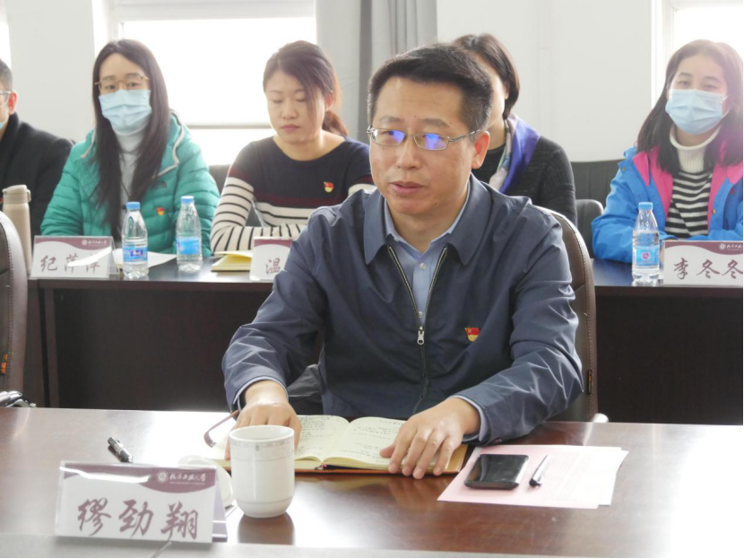 缪劲翔认真听取了马院院长袁本文和副院长张茂林的工作汇报。他结合党的十九届五中全会精神,立足学校和学院“十四五”发展规划考量,从党建与思想政治教育、思政课改革创新、教师队伍建设、学科发展以及服务社会能力等方面和马院干部教师进行了沟通交流。他指出,bat365在线中国官网登录入口地位重要,要进一步提升马院建设与发展水平,切实发挥马院在政治、思想、理论方面的引领作用,筑牢学校社会主义办学方向与立德树人根本任务,深入推进习近平新时代中国特色社会主义思想在各项工作中的系统融入,积极传播当代中国马克思主义,用党的创新理论武装全校师生。