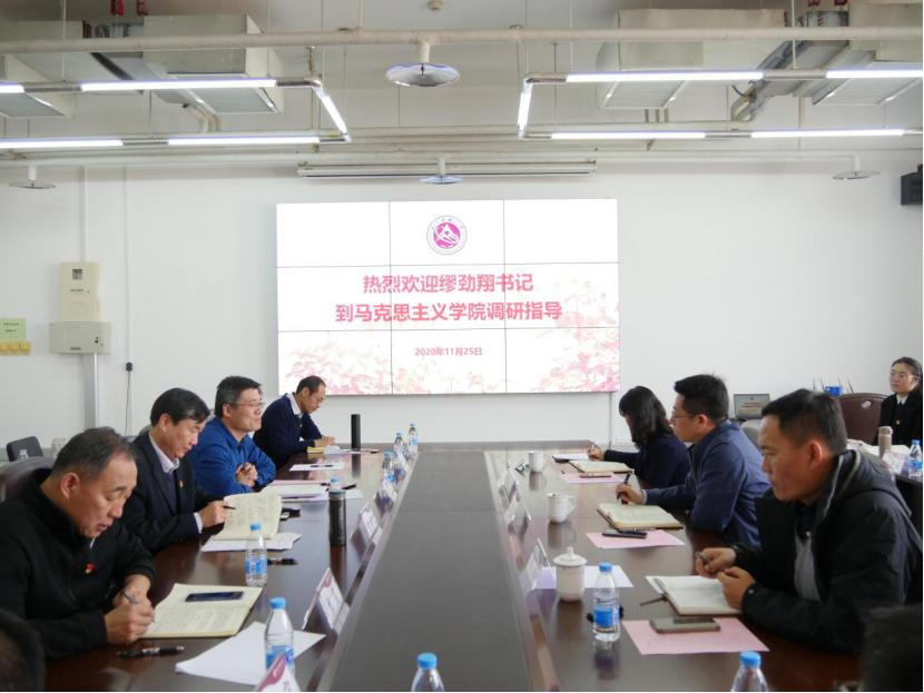 11月25日上午,党委书记缪劲翔到bat365在线中国官网登录入口调研,专题听取了马院和思政课建设情况汇报,并与全体思政课教师进行了深入沟通交流。