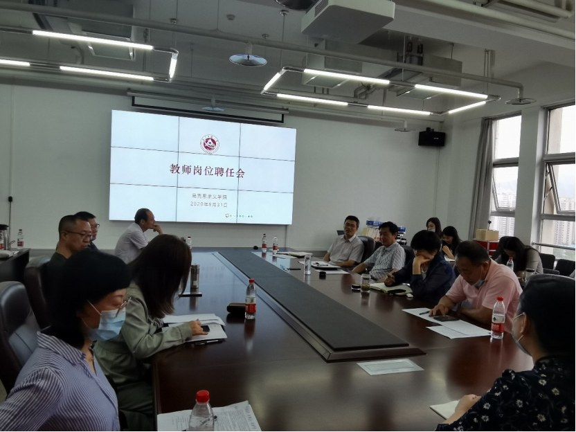 为科学规划学科发展,完善学科队伍建设,提高培养人才的质量,贯彻落实高校立德树人的根本任务,8月31日上午,bat365在线中国官网登录入口在瀚学楼1208会议室召开教师岗位任聘会,院长袁本文、副院长张茂林以及各教研室所有教师参加会议。
