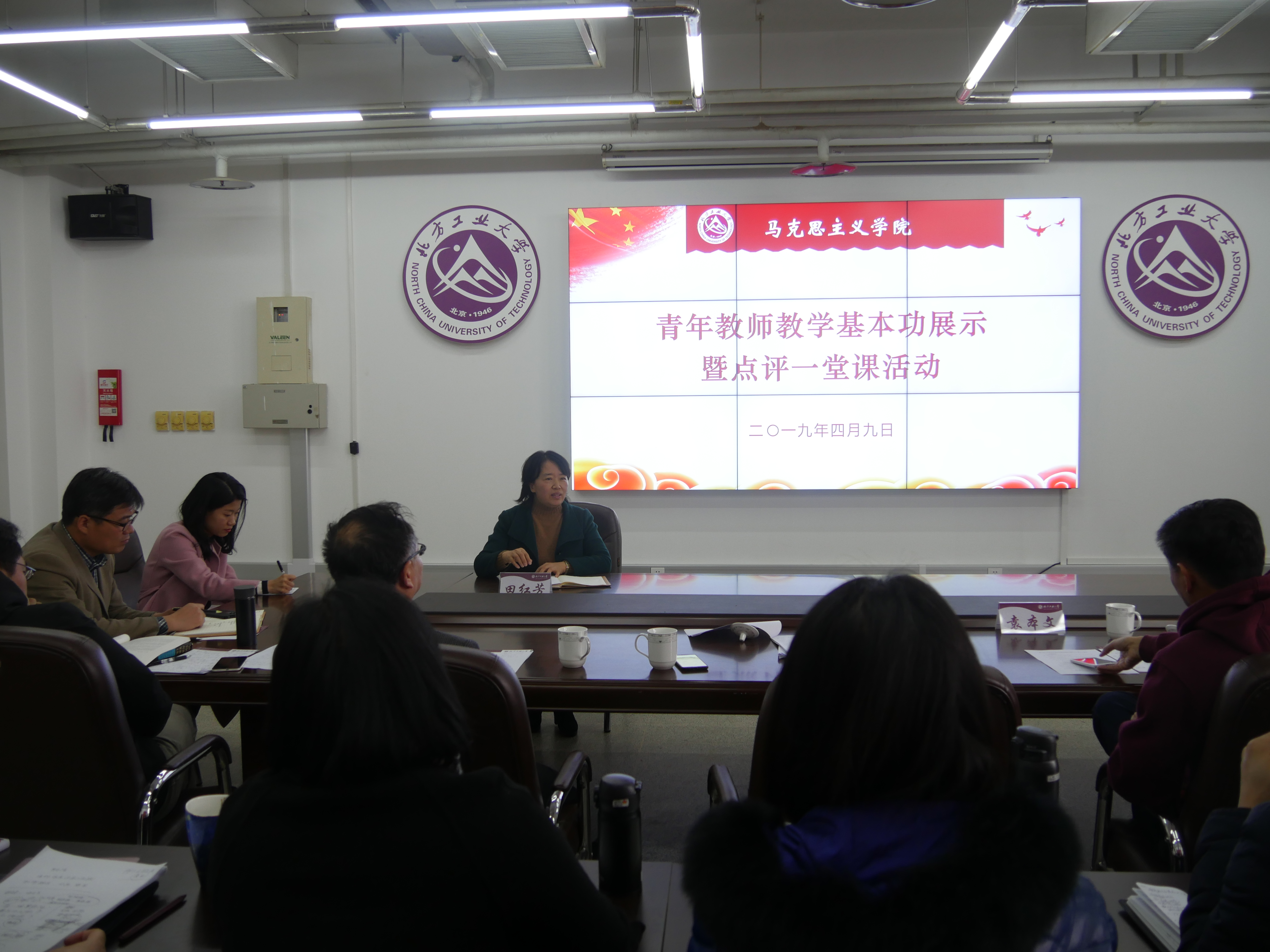 学院青年教师刘以沛、温泉、王水涣、韩小南、周伟婷等五位老师分别选取了“毛泽东思想和中国特色社会主义理论体系概论”、“马克思主义基本原理”、“中国近现代史纲要”、“形势与政策”、“中国特色社会主义理论与实践研究”中的教学内容,以专题教学与案例教学相结合的形式做了教学展示。文法学院党委书记袁本文、马院院长张加才以及马院各教研室主任刘喜珍、李肖、李亚宁、何海兵等作为点评专家分享了听课体会,并围绕如何打造北方工大特色的思政课“金课”进行了深入探讨。