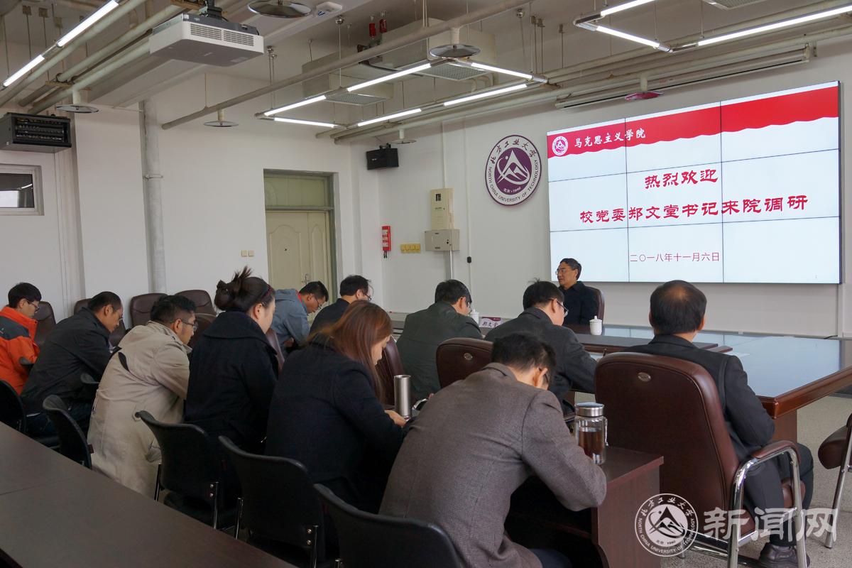 11月6日上午,校党委书记郑文堂来到bat365在线中国官网登录入口,聚焦新时代新马院的建设与发展,同马院班子成员及教师代表进行了充分研讨和深入交流。