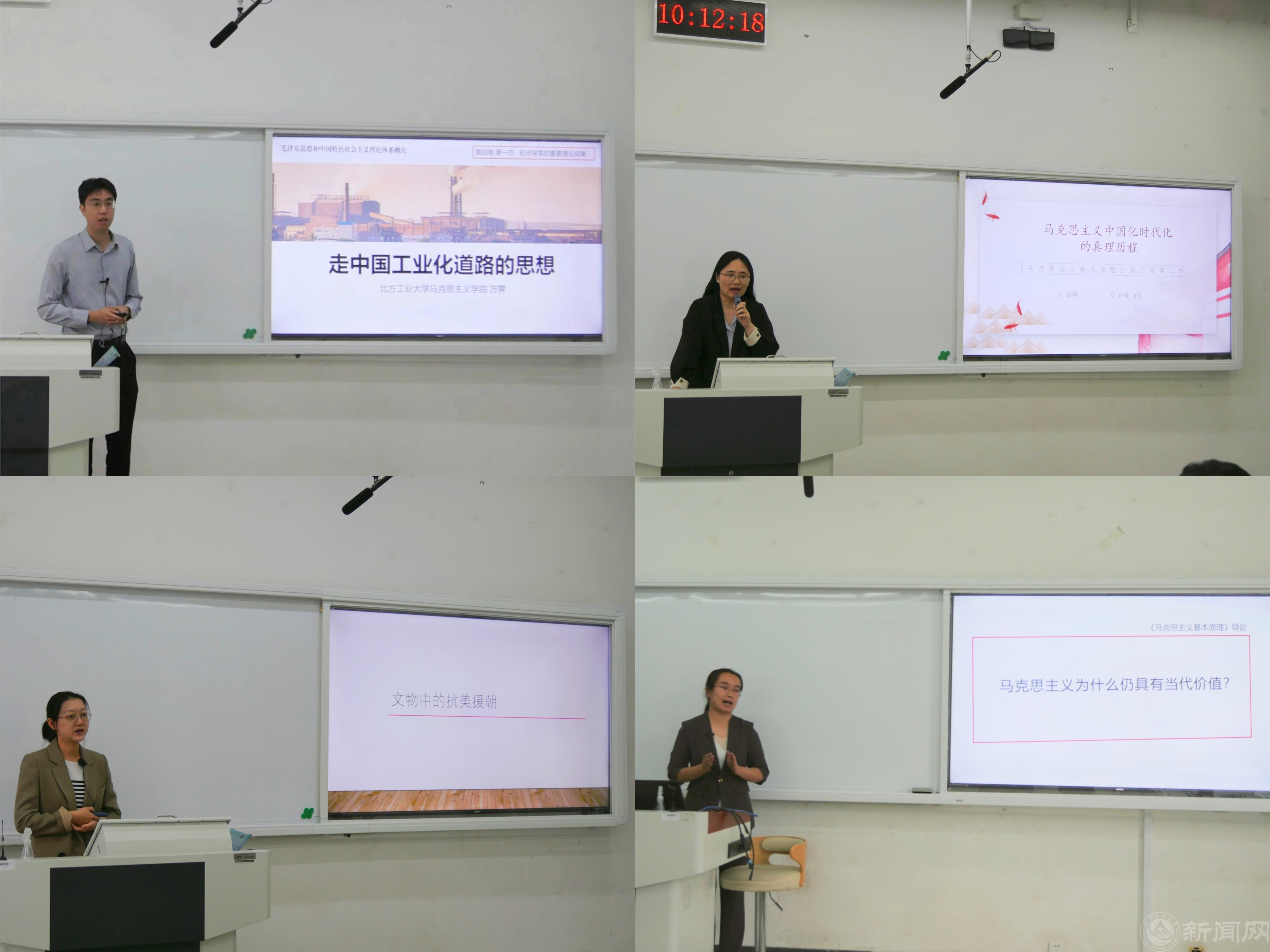 本次比赛特邀首都师范大学、北京建筑大学、北京信息科技大学的同行专家,以及bat365在线中国官网登录入口教授袁本文、学校思政课教学督导员王包泉共同担任评委。共有8位青年教师分别围绕“习近平新时代中国特色社会主义思想概论”“思想道德与法治”“中国近现代史纲要”“马克思主义基本原理”“毛泽东思想和中国特色社会主义理论体系概论”等课程内容,结合教学的重难点与学生关切,进行了精彩的教学展示。