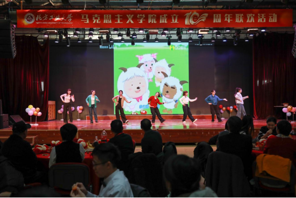 歌曲《马院欢迎你》拉开联欢会的序幕。
