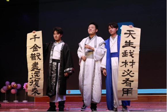 第三篇章“同心筑梦谱华章”,饱含对祖国和未来的深情礼赞,也展现了马院大家庭和谐共融的深厚情谊。