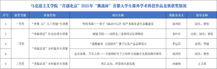 “青创北京”2025年“挑战杯”首都大学生课外学术科技作品竞赛启动以来,学院迅速响应、周密部署备赛事宜。备赛期间,学院扎实推进项目选拔培育、作品打磨提升、参赛答辩辅导等方面工作,为师生提供了坚实有力的赛事支撑与服务保障。各学生团队始终秉持锐意进取、迎难而上的科创精神,用实际行动诠释“以挑战为帆,赴青春之约”的竞赛信念,充分彰显马院学子积极向上的精神风貌。