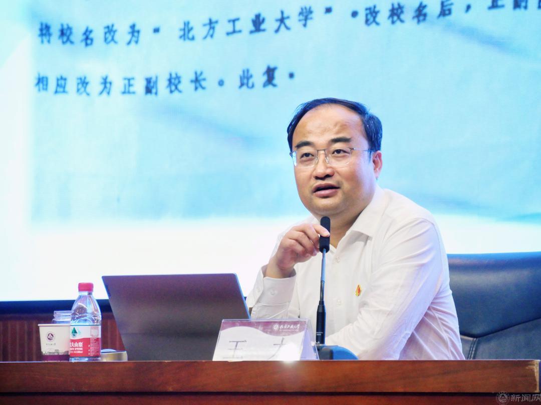 王力深入讲解了智能制造的核心内涵与构成要素,系统梳理了从传统制造到智能制造的转型升级之路。他结合中国在工业互联网、智能装备与机器人等前沿尖端领域的突破性成果,强调了推动智能制造发展的重要意义。他从学校办学近80年的发展历程出发,聚焦学校在智能制造领域的持续探索,通过一个个鲜活的案例,生动诠释了北方工大人在挑战科技前沿中的奋勇拼搏和锐意进取,始终以“工业报国、工业兴国、工业强国”的精神底色和实际行动服务国家重大战略需求。王力表示,新时代以来,学校进入高速发展时期,依托老工科、拓展新内涵,在新赛道跑出加速度,开启了新学科、新学院、新专业、新校区的“四新”建设新阶段。他号召同学们要把握时代机遇,传承“兴工报国”红色基因,以服务国家战略、推动区域高质量发展为核心,在智能制造发展浪潮中勇担使命,聚焦科技前沿,不断开拓创新,展现出新时代北方工大人的挺膺担当。