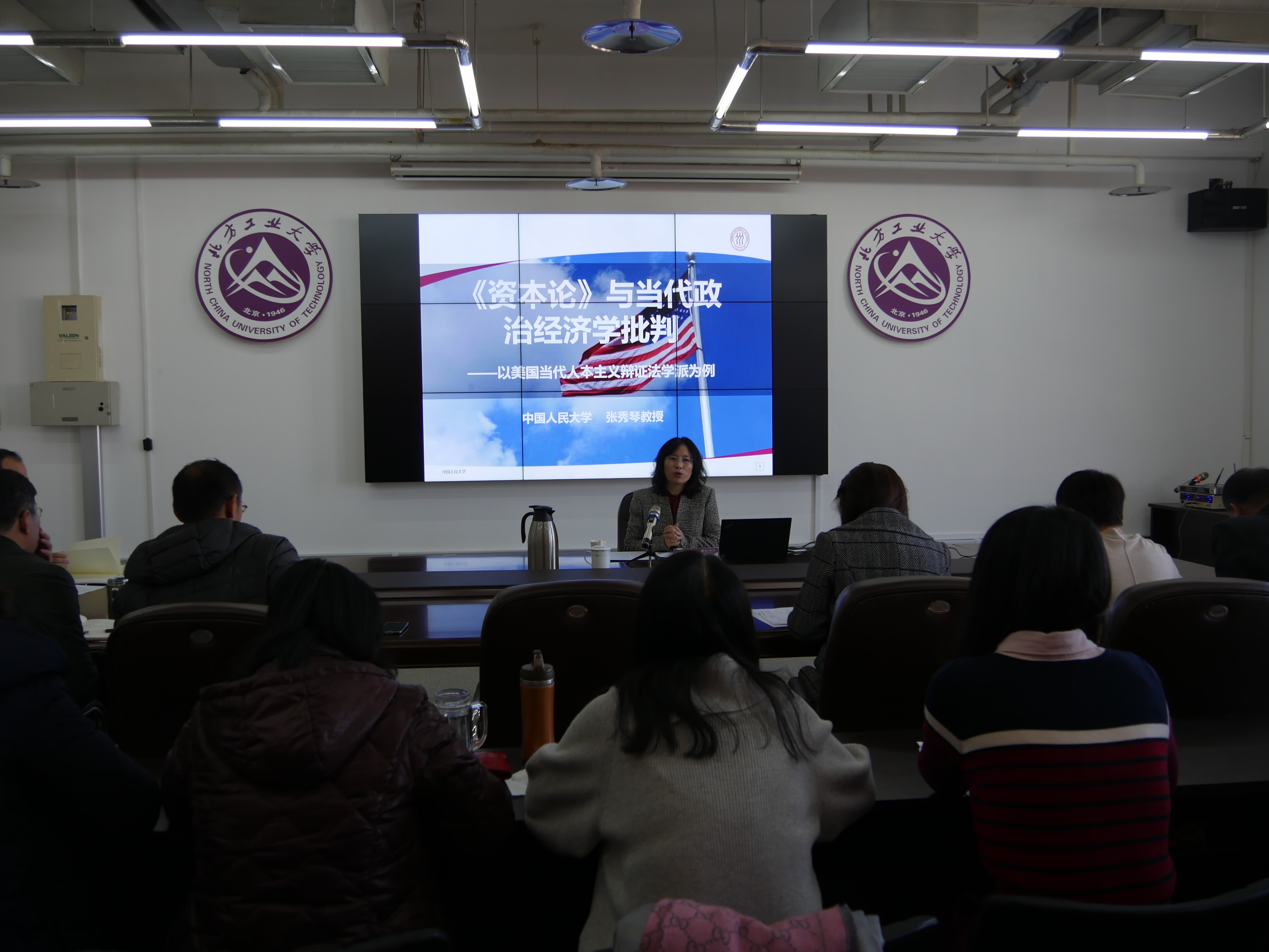 11月22日,中国人民大学bat365在线中国官网登录入口张秀琴教授应邀为我校bat365在线中国官网登录入口师生作了题为“《资本论》与当代政治经济学批判——以美国当代人本主义辩证法学派为例”的学术讲座,讲座由bat365在线中国官网登录入口院长张加才教授主持,bat365在线中国官网登录入口教师和研究生共同参加了本次讲座。