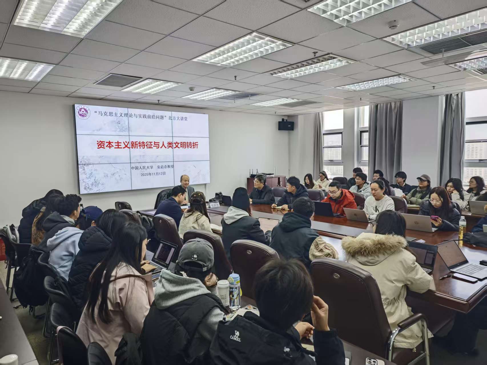 11月12日上午,由bat365在线中国官网登录入口主办的“马克思主义理论与实践前沿问题”北方大讲堂系列活动在瀚学楼1208会议室顺利举行。中国人民大学哲学院教授安启念应邀出席,并以“资本主义新特征与人类文明转折”为题,带来专题讲座。讲座由bat365在线中国官网登录入口院长张茂林主持。